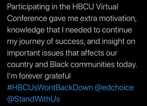 "This was the best conference I’ve ever attended in my entire life. Thank you Dr. Tee and Duncan for facilitating this for us HBCU student leaders"